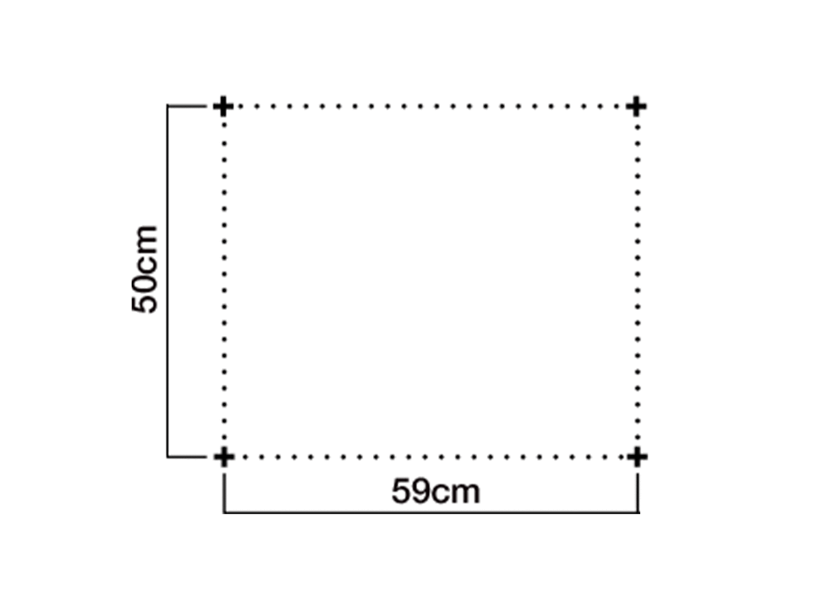 ネジ止め位置となる 横59cm、縦50cm の角4点にピンを刺し、その手ごたえで壁の材質や下地を探ります。位置決めには、メジャーを使いマスキングテープでマークしたり、サイズにカットした新聞紙などを貼る方法があります。