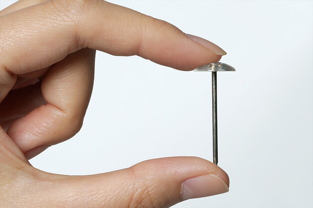 ホームセンターなどで手に入る「カーペットピン」は長さ約30mmと適度な長さがあるので壁に刺して材質や下地を探るのにとても便利です(画鋲は針が短いので代用出来ません)。壁に小さな穴が開きますが、壁への負担を少なくチェックできます。ご希望の方は、スコープで何かご注文いただく際、連絡事項の欄に「ピン希望」とご入力ください。ピンを1本一緒にお届けします。