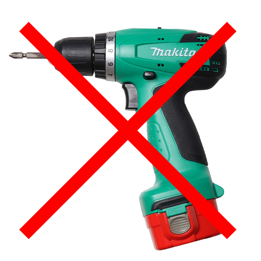 印の真上にアンカーを打ちます。必ずハンドドライバーで手回し。回しすぎるとアンカーが空回りして抜け落ちてしまうので、写真のようにピッタリで止めます。※アンカーは一度使うと再利用できません。