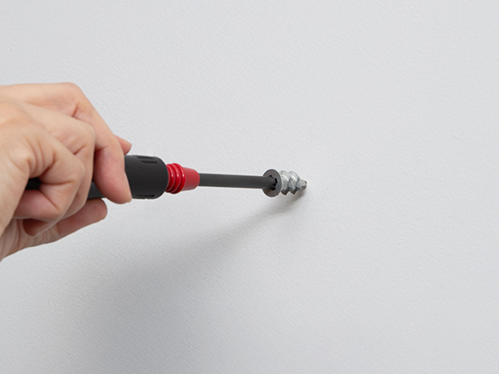 ネジを外す時は少し注意が必要です。アンカーとネジが供回りしてしまうと、アンカーごとゴソッと抜けてきてしまいますので、ハンドドライバーを使い、ネジを壁に押し付けるようにして、様子を見ながら回していきましょう。供回りが回避できます。