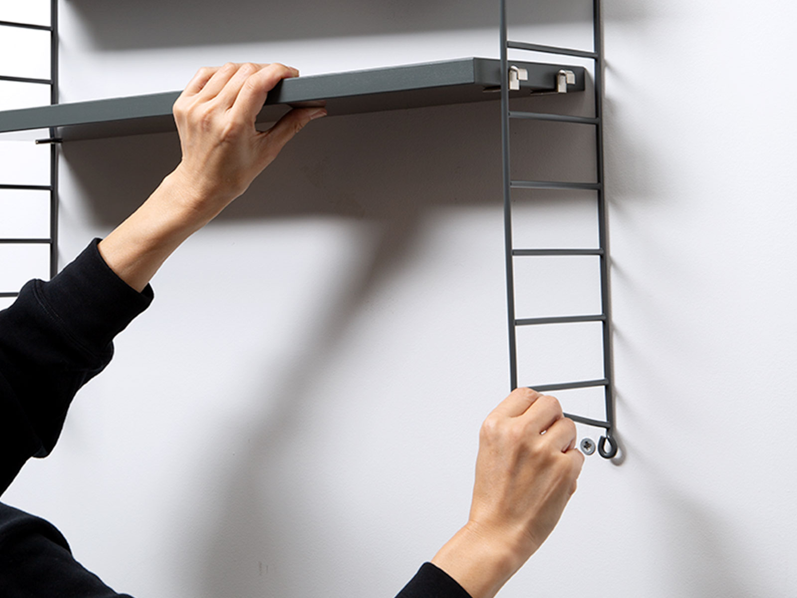 完成後に棚の位置を変えたい場合は、片側の棚受け2つを外して作業すると移動しやすいです。