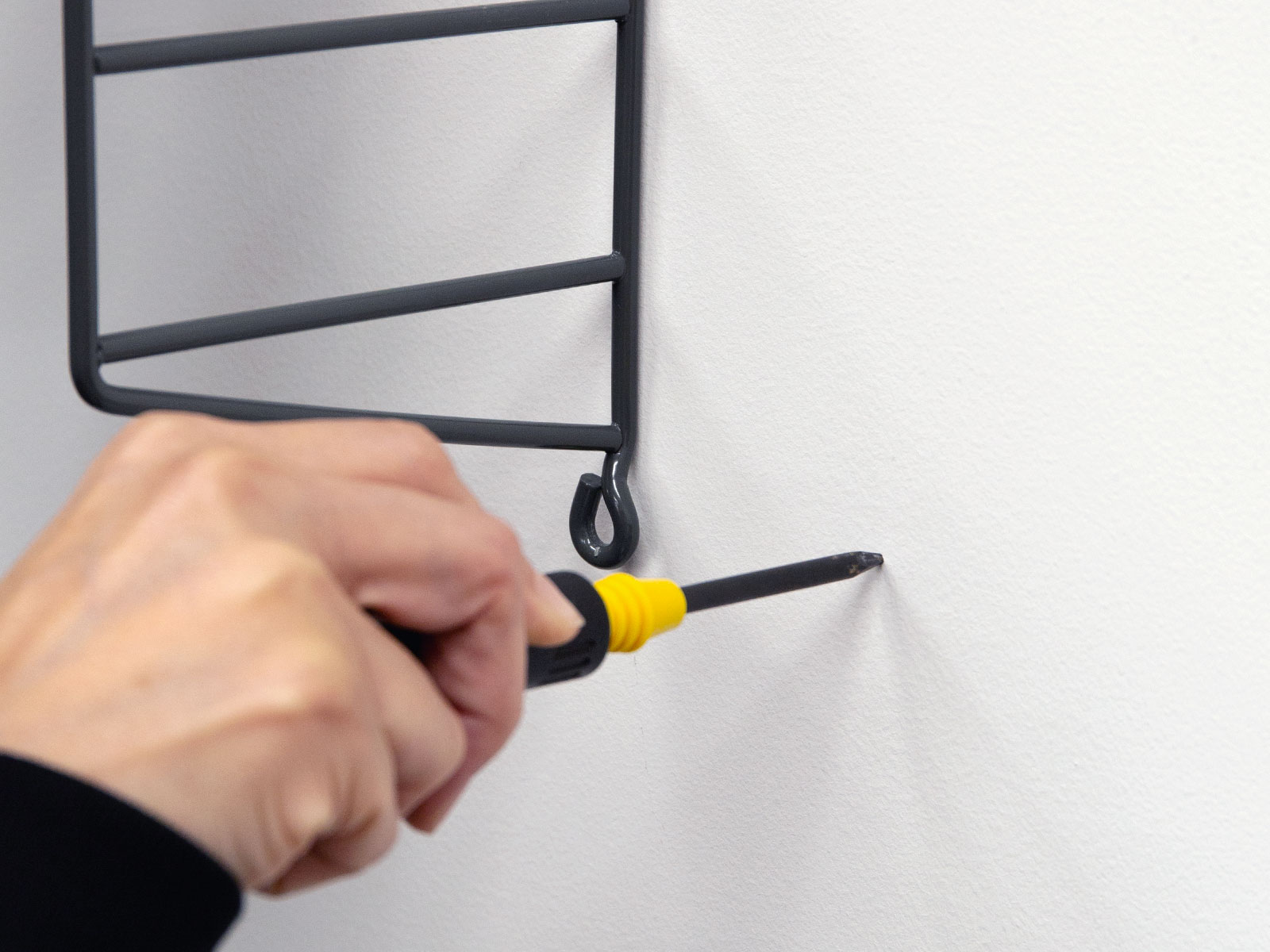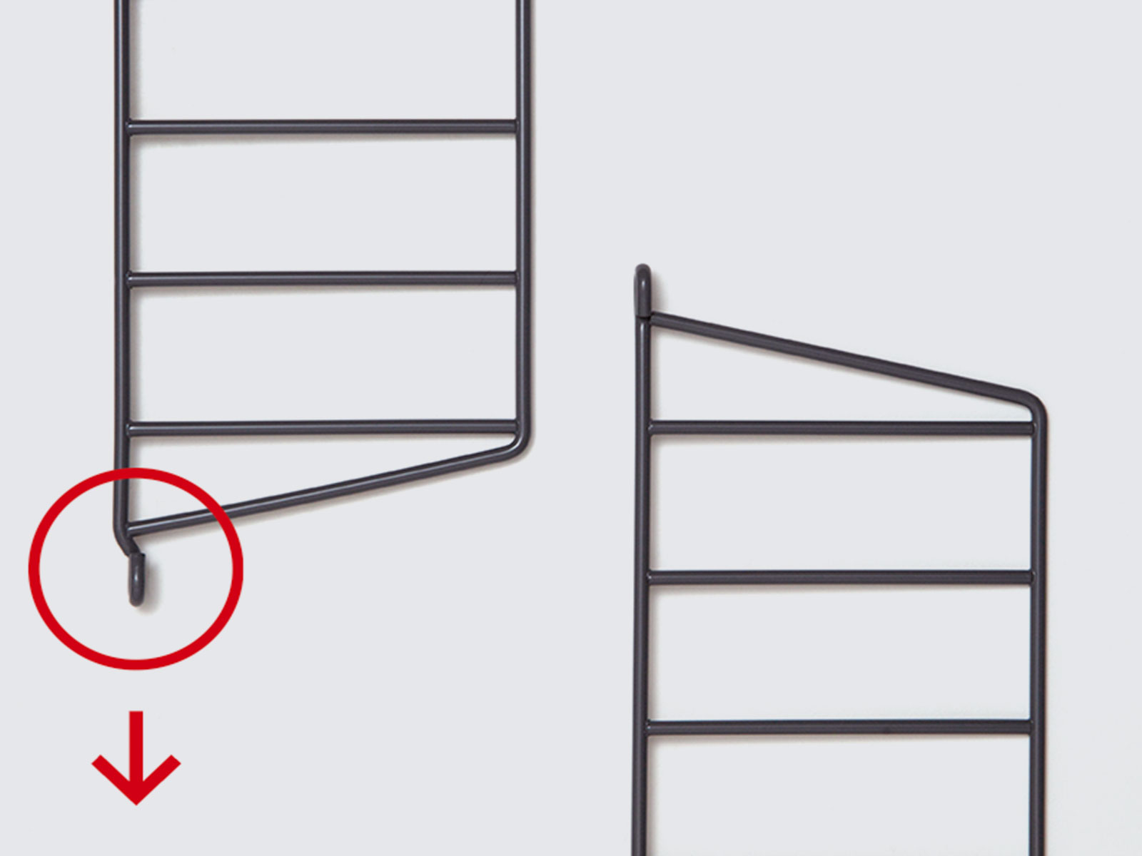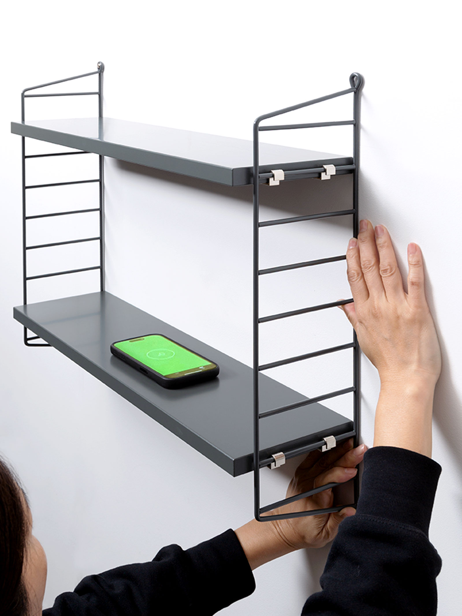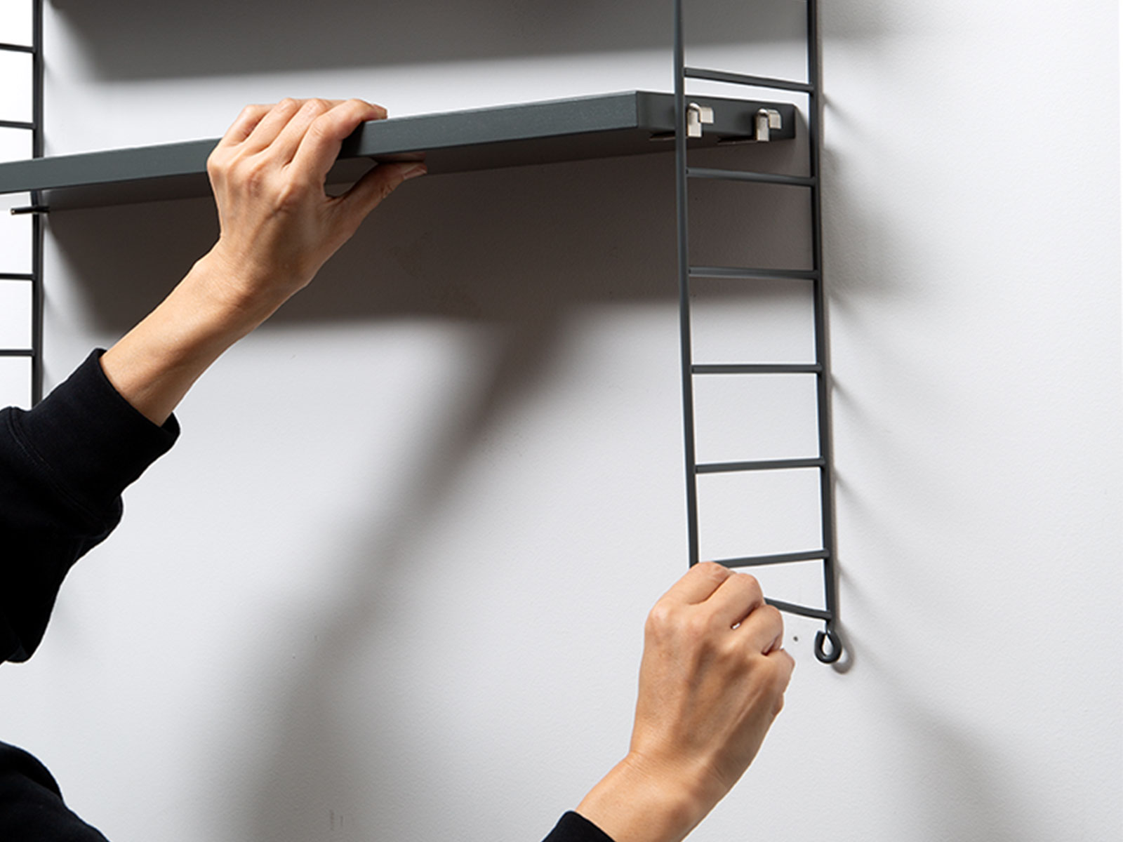 完成後に棚の位置を変えたい場合は、片側の棚受け2つを外して作業すると移動しやすいです。