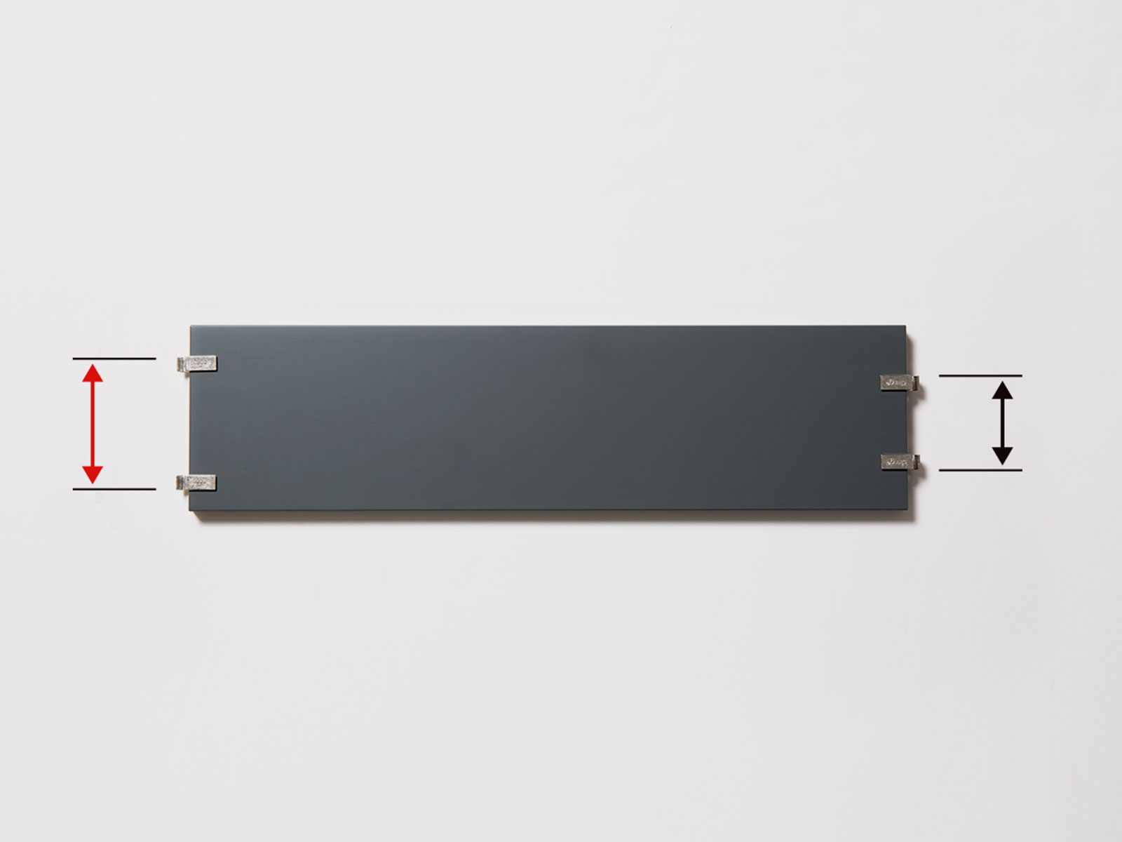 棚受けを取り付けます。棚受けの間隔が広い方が「左」