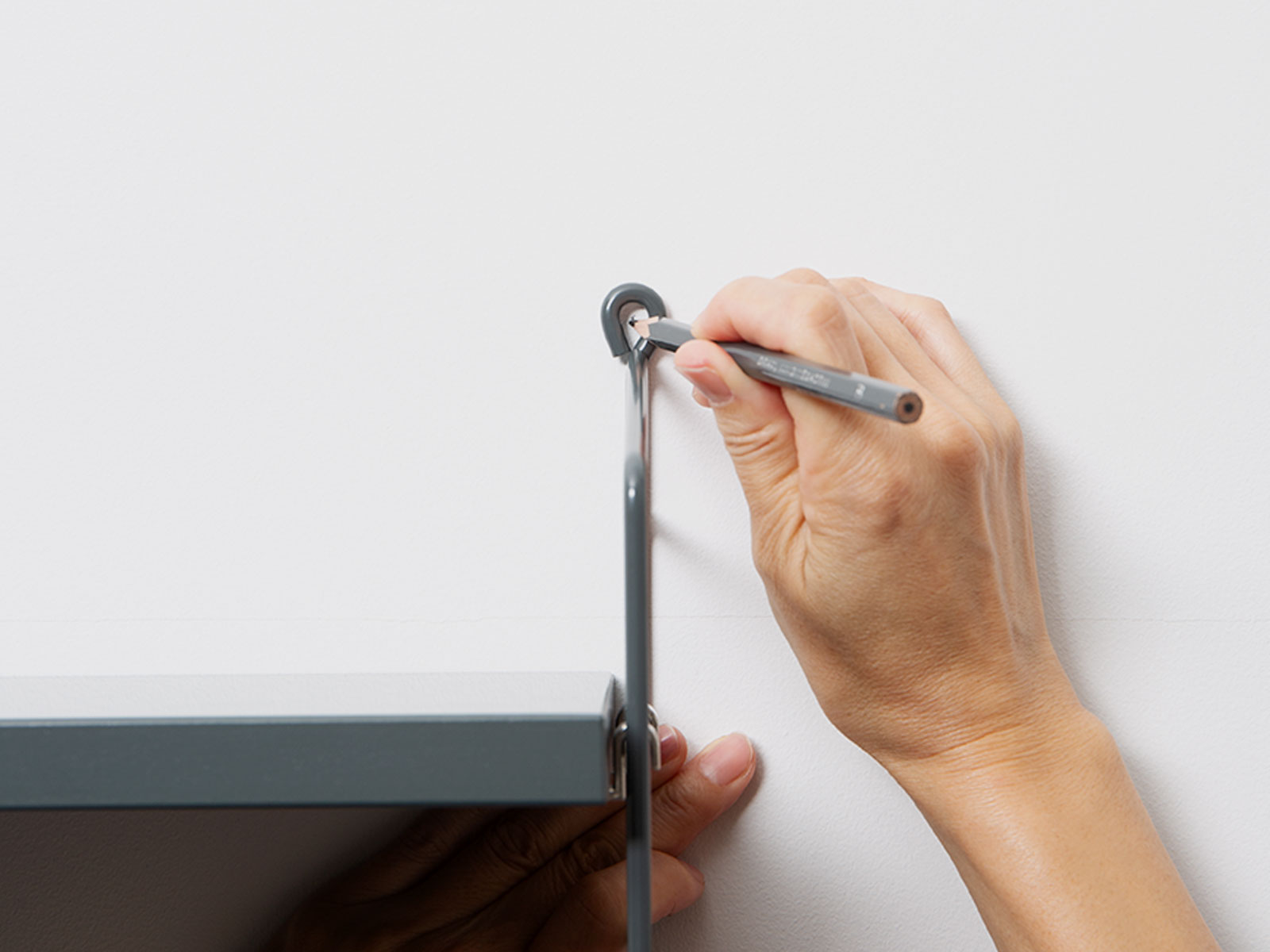 左上のネジ止め位置に印をします。