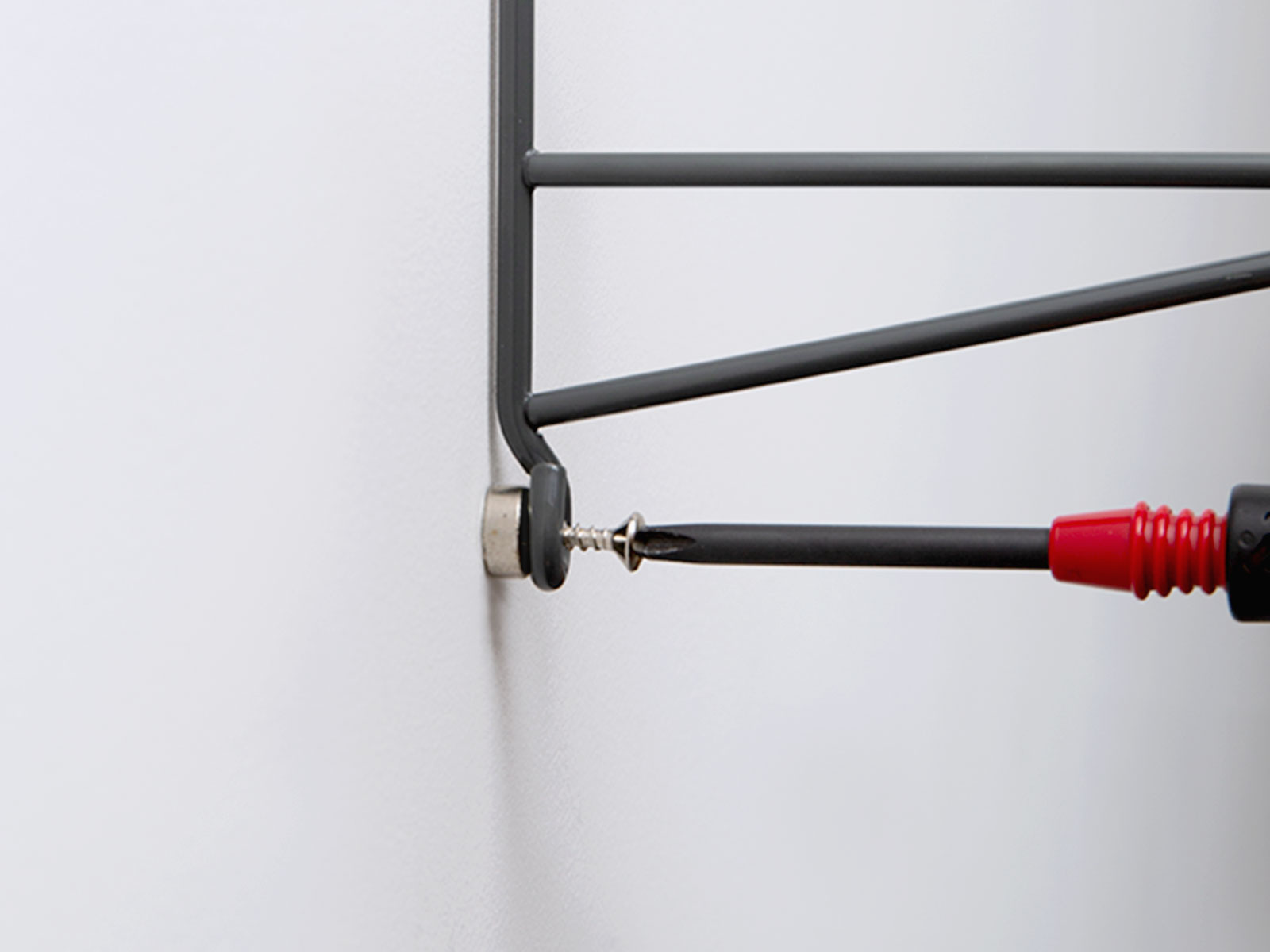 左サイドパネルの上を、ネジで固定します。木質壁の種類により固い場合は、電動ドライバーをご使用ください。